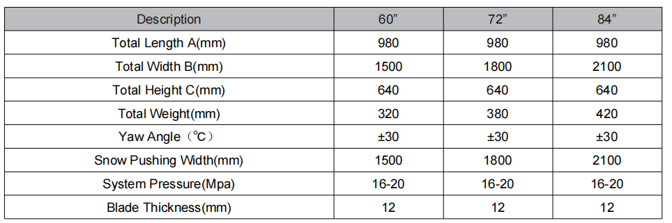 Equipped with a hydraulic control system, it can adjust the snow plow angle and height in real time, achieve left and right swing and deflection functions, adapt to different snow clearing scenarios。